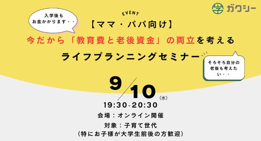 【子育て世代の保護者必見】ガクシー、教育費と老後資金の両立を考える無料セミナーを9月10日(水)開催