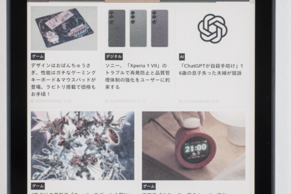 また、色の再現性も液晶ほど鮮やかではなく、あくまで“印刷物に近い色合い”です。それでも実写系のコンテンツは比較的違和感なく表示できるのですが、コミックやアニメ調のイラストなどでは、色合いの淡さが「何か違う」感があるのも確かです(特に最近のコミックはディスプレーで見られるのが前提になっているものが多い)。