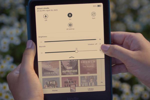 もうひとつ便利なのが、シグニチャーエディションに搭載された「明るさ自動調整機能」。Kindle Paperwhiteのシグニチャーエディションと同様に(標準のKindle Colorsoftには搭載されません)、周囲の環境光を感知して、自動的にフロントライトを最適な明るさに切り替えてくれることで、部屋の明るさを問わずに常に快適に読書できます。