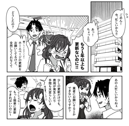 専門知識なしでホームページが更新できるCMSのメリットを、ストーリーで楽しく理解