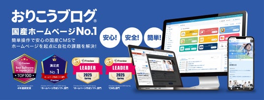 また、レビューサイト「ITreview」において、ホームページ作成ソフト部門で顧客満足度NO.1を獲得し、「Best Software in Japan 2025」TOP100にも選出されています。