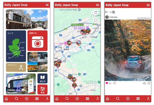 「Rally NFTトレンドスポット」は、データ連携プラットフォームForumSyncの仕組みを活用し、位置情報やマップと連携して、スマホからトレンドスポットをリアルタイムで投稿可能なシステム。イベント開催中に、ラリーカーが来た地点や、コース周辺の美しい景色、近隣のお店といった情報を写真付きで共有できるだけでなく、自分の投稿をNFT化することもでき、ラリーの楽しみ方を広げると共に、回遊性の向上にも貢献します。