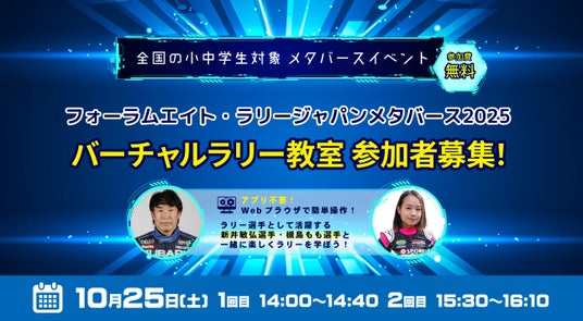 株式会社フォーラムエイト(本社:東京都港区港南2-15-1、社長:伊藤裕二、URL:https://www.forum8.co.jp)は、タイトルスポンサーを務めるWRC FORUM8 Rally Japan 2025(2025年11月6日~9日)にて、昨年に引き続きメタバース企画「フォーラムエイト・ラリージャパンメタバース2025」を実施。本年は、新たなコンテンツとして「ぬりえメタバース」および「Rally NFTトレンドスポット」を提供いたします。