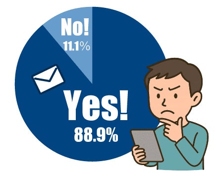 ・577名のメール受信者のうち、88.9%が過去に怪しい・不審と感じるメールを受け取っていた。
