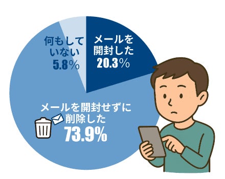 ・怪しい・不審と感じたメールを受信した際に、73.9%がメールを開封せず削除し、高いセキュリティ意識をもっていることが示された。