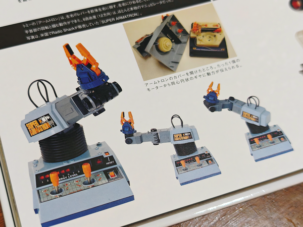 『aibo誕生』収録「正しい理科少年たちのために」で1970年万博のカメラロボットなどで有名な相澤二郎さんのロボットたち、富谷龍一氏によるメカモ、トミーのOMNIBOT2000、横井軍平氏によるファミコンロボット、LEGO MINDSTORMSとともにアームトロンを紹介させていただいた。