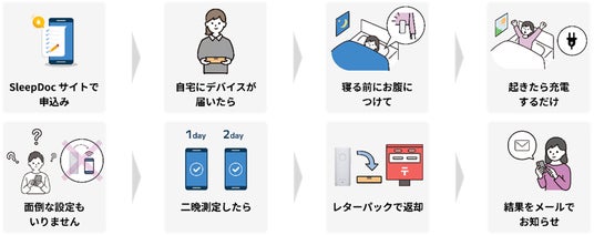 ※1 本サービスは医療行為を行うものでも、医療機器を提供するものでもございません。詳細は本サービスの睡眠障害リスクの計測方法について(https://sleep-doc.jp/#notes)をご参照ください。