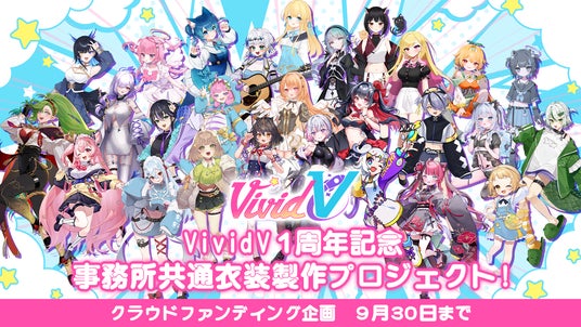 Vivid Vは2024年8月に発足し、現在は個性豊かな29名のVTuberが所属する事務所です。2025年8月、ファンの皆様の応援のおかげで設立1周年を迎えることができました。この節目を記念して、所属全タレントが共通で着用できる「事務所共通の新衣装」を制作するクラウドファンディングを展開しています。