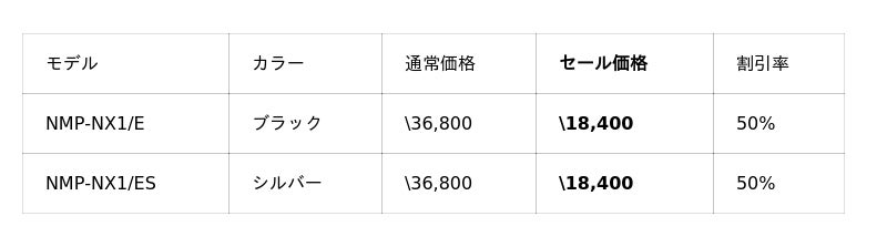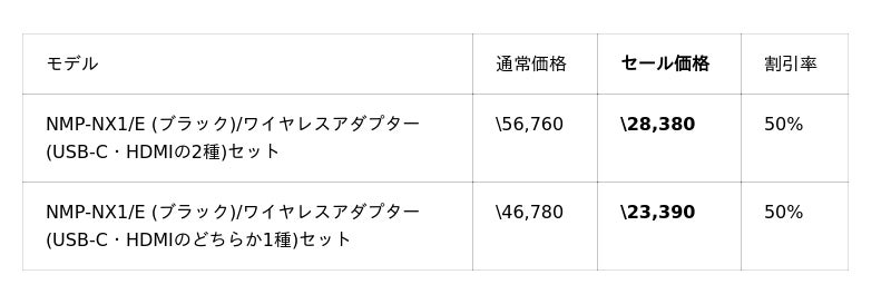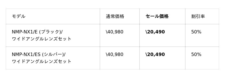 今回のセールでは、小型軽量のプロジェクターNX1を50%OFFの¥18,400で販売。