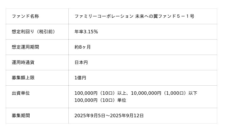 貸付型クラウドファンディング「Funvest」9/5より新ファンド「ファミリーコーポレーション 未来への翼ファンド5-1号」の募集開始
