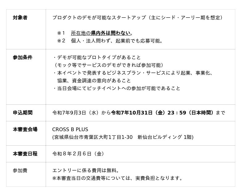 【宮城県DXスタートアップ創出イベント実行委員会】Miyagi Pitch Contest 2026(募集締切:令和7年10月31日(金))
