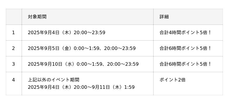 【イベント1.】全会員が対象!時間限定で全品ポイント5倍!