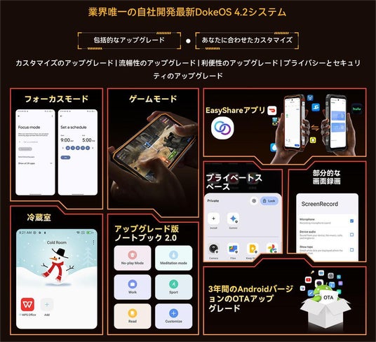 自社開発の最新DokeOS 4.2(Android 15ベース)