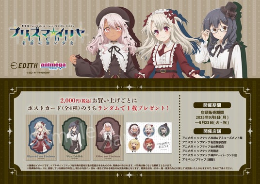 IPを活用したイベント事業・グッズ事業を手掛ける株式会社イーディス(本社:東京都豊島区、代表取締役:森俊平、以下イーディス)は、劇場版「Fate/kaleid liner プリズマ☆イリヤ Licht 名前の無い少女」の描きおろしイラスト、描き起こしミニキャライラストを使用した商品をアニメガ×ソフマップにて先行販売いたします。