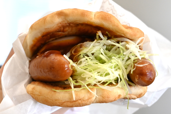 キャベツたっぷり、メンチは揚げたてでアツアツです。チーズがのってトロリとしていますね。これは、大きな口を開けてガブッとかぶりつくのがオススメ。
