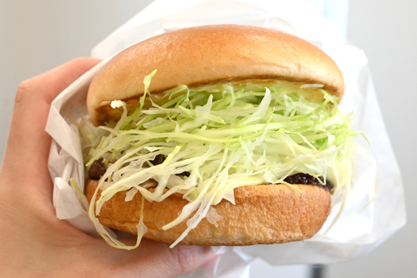 食べてみると……、サクサク衣のメンチカツがジューシーで、そこへチーズのまろやかさ重なって、さらにシャキシャキのキャベツの食感。黄金比のように完璧なメンチカツバーガーではないですか!