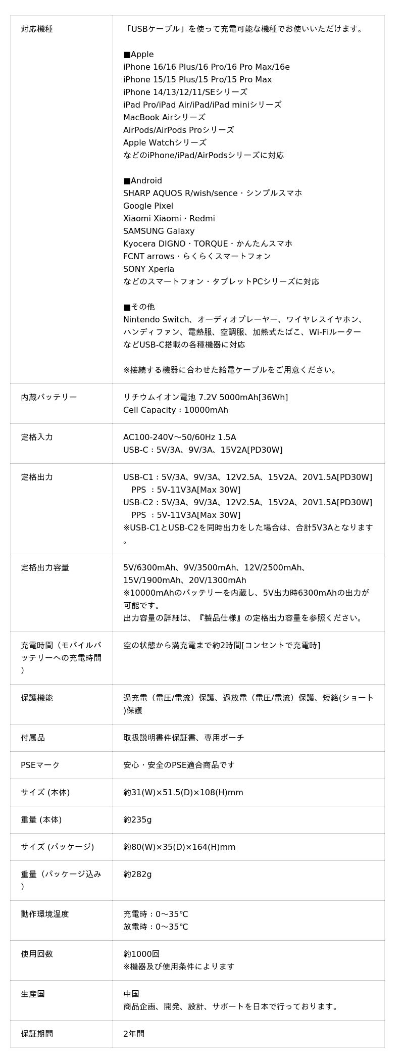 コンセント一体型 モバイルバッテリー 10000mAh PD30W入出力 2in1 残量表示ディスプレイ PSE適合製品 全2色 2年保証(MOT-MBAC10001-EC)