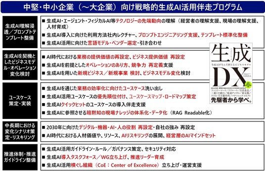 中堅・中小企業(~大企業)の戦略的生成AI活用を支える「生成AI活用伴走プログラムの展開」(d-strategy,inc/書籍『生成DX』)