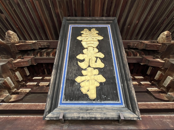 特別にあの「善光寺」の文字を間近で見せてもらいました。2畳くらいの大きさがあるとのことで、かなりのサイズ。「善」の字が牛の顔にも見えるといわれているのですが、こうして見ると確かに牛っぽい!