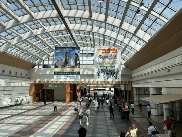 長野駅へ向かう北陸新幹線の車内は、朝早めということもあってビジネスマンが多く見られました。とはいえ夏休みに入ったらしき学生や外国人の姿もけっこう多く、車内はにぎわっていました。