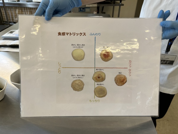 手作り体験では「おやきとは」という簡単なレクチャーを受けた後、野沢菜とあんこの2種類を作ることができます。レクチャーしてくれた伊藤友香さんによると、おやきの歴史は古く、なんと縄文時代の遺跡から粉を焼いて食べていた跡が見つかっているのだそう。そんなに昔から!