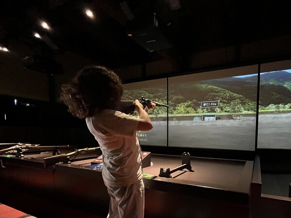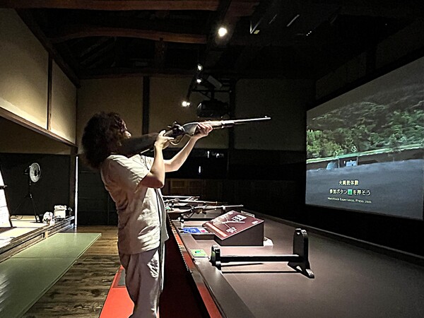 ここではなんと、砲術体験ができるんです。もちろん本物ではなくバーチャルなのですが、火縄銃・スペンサー銃・臼砲の3種類を用意。ぜひやってみたい!と鼻息も荒く柔術所の戸を開けました。
