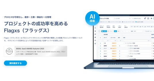 「Flagxs(フラッグス)」を展開するフラッグス株式会社(東京都渋谷区、代表取締役:林部 正樹)が提供する、プロジェクトマネジメントDXツール『Flagxs』は、スマートキャンプ株式会社(以下「スマートキャンプ」が主催する「BOXIL SaaS AWARD Autumn 2025」のプロジェクト管理・工数管理部門で「Good Service」に選出されました。