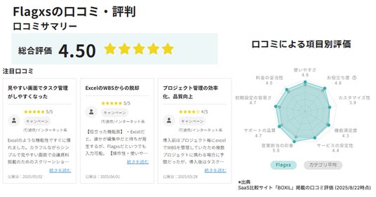 「Flagxs導入しプロジェクト管理品質が向上した」と口コミで高評価(*1)