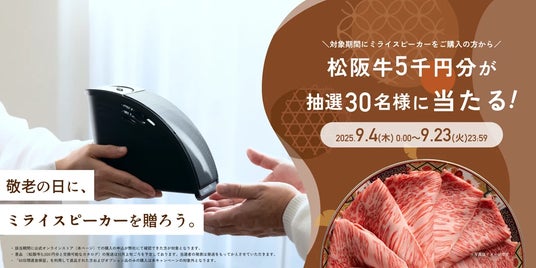 この度、敬老の日の贈り物をお探しの皆様に向けてキャンペーンを実施いたします。ぜひ、ミライスピーカーでテレビを楽しみながら、松阪牛で食卓を囲み、お茶の間の楽しい時間を過ごしください。ぜひ、ミライスピーカーを敬老の日のギフトとしてご検討ください。