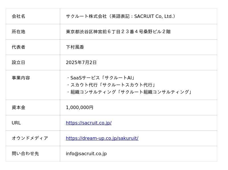 サクルートAIを社会に広く届け、より多くの企業が採用の成功体験を積み重ねられるようにするため、2025年7月2日、サクルート株式会社を設立いたしました。
