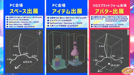 出展形式は「スペース出展」「アイテム出展」「アバター出展」の3種類を設けました。