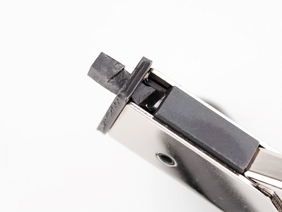 一度に切り取れるのは幅約6mm、長さ約2mm。5回切り取っても1cmくらいしか進みませんから、気長に作業する必要があります。もっと大きく切り取れれば早いのに、と思わなくもないですが、そうすると、細かい加工ができなくなりますし、切断面も歪みやすくなります。キレイに仕上げるという点を考えれば、このくらいがちょうどいいのでしょう。