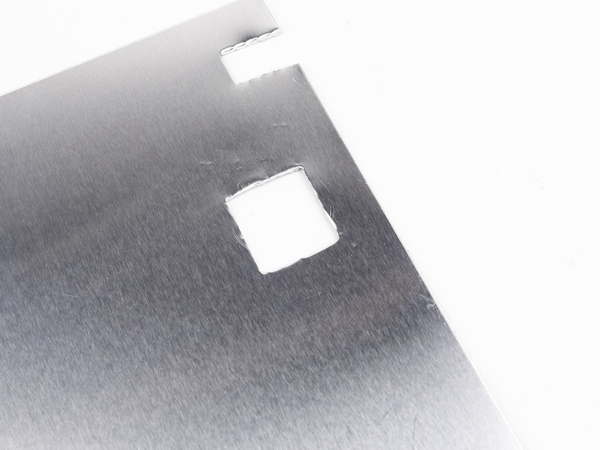 あとは、この穴にハンドニブラーの刃を挿し込み、周囲を切り取って四角くしていくだけ。切り始めが端からになるか、途中からになるかが違うだけで、基本は変わりません。