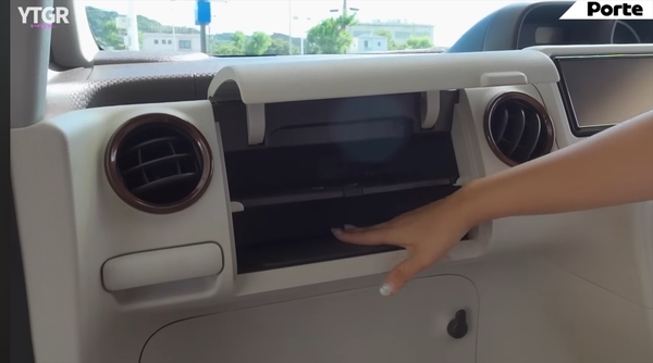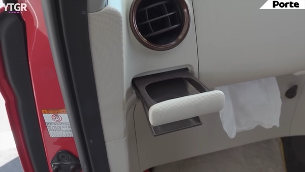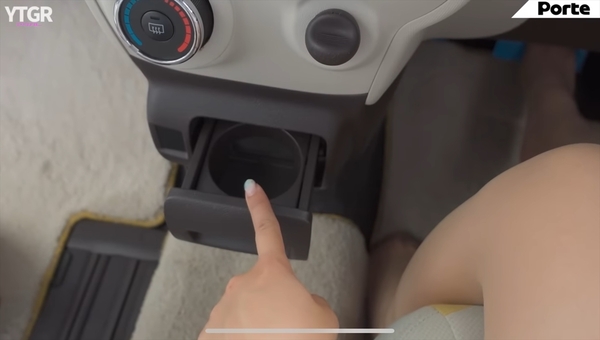 ほかには、ドリンクホルダーや小物入れ、荷物をかけられるフックが付いていました。ポルテの収納って、なんか面白い(笑)。
