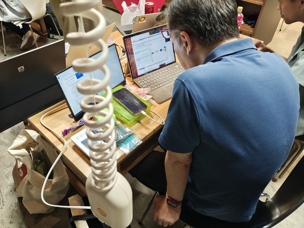 SORACOM UGは、実際にIoTデバイスを触って、SORACOMサービスを体験するハンズオンが多い。この日は、7月に開催されたSORACOM Discovery 2025の発表をおさらいするRecapに続き、ハードウェアの設定、ローコードツールの利用、プロトタイプ開発などのハンズオンが行なわれていた。私がイベントに合流した夕方には、10人近い参加者がハンズオンを無事に完了させた状態だった。