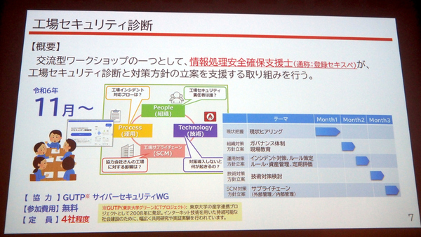 同発表会には、県内中小製造業のセキュリティ対策を支援する山口県産業技術センターや、SYNCHROからのセキュリティ支援提供を受けている製造業顧客(栃木日東工器、メンテック)も登壇し、製造業と工場におけるセキュリティ対策の実情や課題を語った。