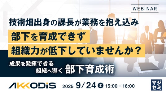 マジセミ株式会社は「技術畑出身の課長が業務を抱え込み、部下を育成できず組織力が低下していませんか?」というテーマのウェビナーを開催します。