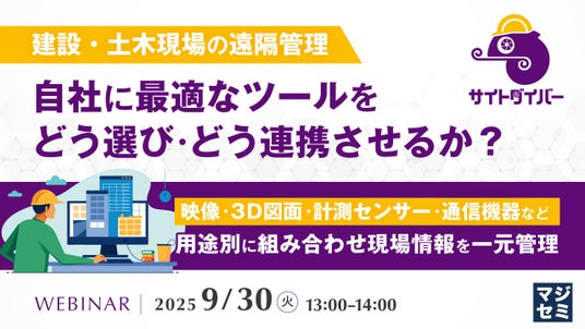 マジセミ株式会社は「【建設・土木現場の遠隔管理】自社に最適なツールをどう選び・どう連携させるか?」というテーマのウェビナーを開催します。
