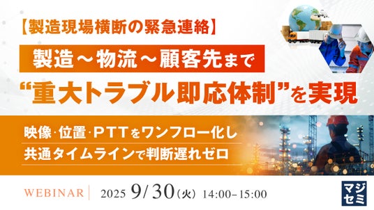 マジセミ株式会社は「【製造現場横断の緊急連絡】製造~物流~顧客先まで“重大トラブル即応体制”を実現」というテーマのウェビナーを開催します。