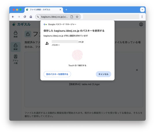 株式会社IDEOJ(本社:東京都渋谷区)は、日本で初めてパスキー技術をファイル暗号化に実用化(※)したサービス「カギスル」の基本機能を、2025年9月8日より無料で提供開始しました。