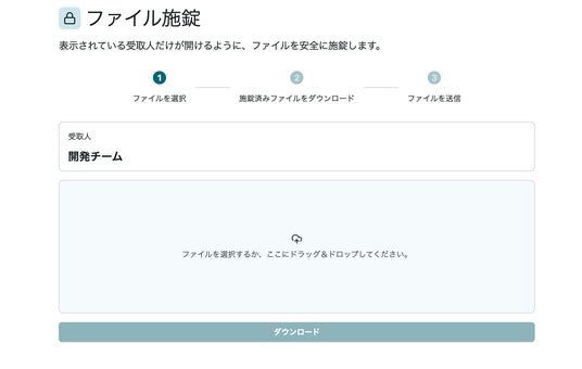 受信者のメールアドレスを指定するだけで、その人だけが開けるファイルを作成。受信者側のアカウント登録は不要です。