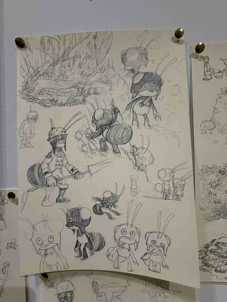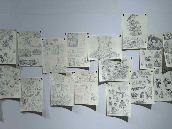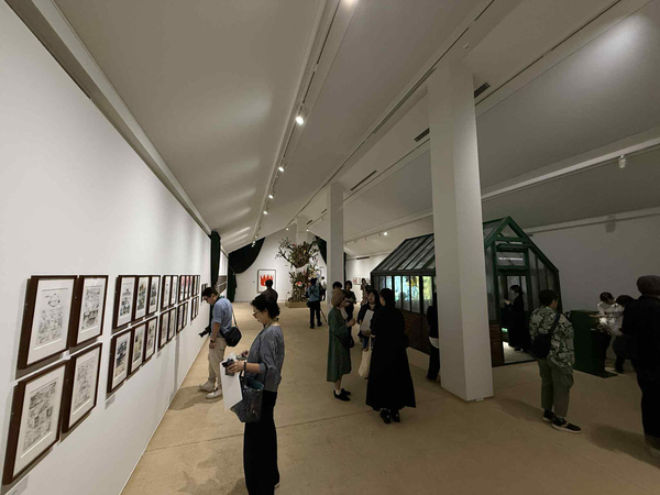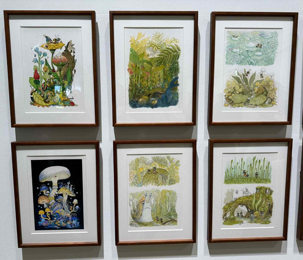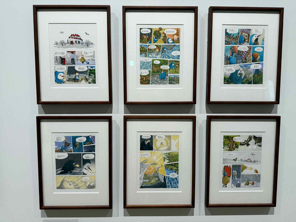 本展では、2023年〜2025年に描かれた作品から、初公開を含む選りすぐりの原画約90点を展示している。 福山雅治の楽曲「クスノキ‐500年の風に吹かれて‐」のために描かれたアニメーション原画をはじめ、草野マサムネ(スピッツ)との歌画本『ひみつストレンジャー』の原画(一部)や、谷川俊太郎との絵本『ここはおうち』の原画(一部)など、近年発表されたさまざまなコラボレーション作品が一堂に集結した。