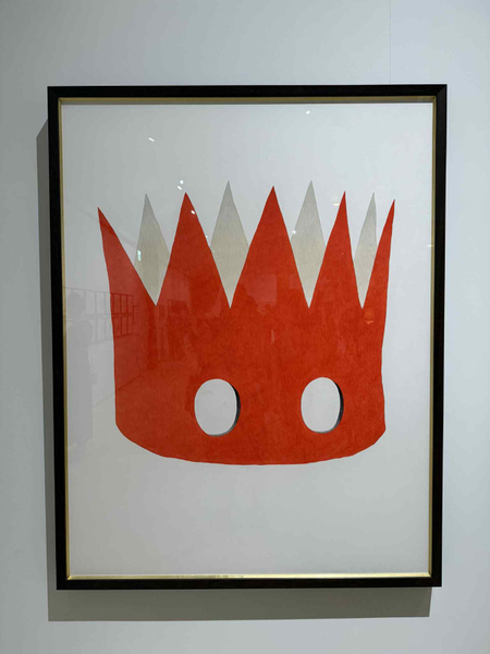 今回の展示では、2枚の絵を見ることが出来る。絵に登場する子供が被っているマスクみたいな、王冠みたいなものが、もう一つの絵に出てくる。この2枚の絵は、作り方が全然違う。片方は、たった1日で描いたもの。もう片方は、半年以上かけて、じっくり、じっくり描いたもの。
