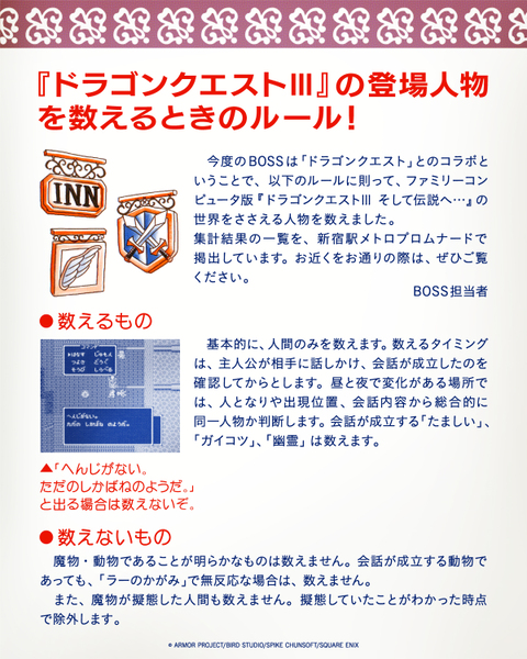 サントリー「BOSS」、「ドラクエIII」全キャラにありがとうを伝えるカウントクエストを達成 所要60時間、人数は…!?「その視点はなかった」「すげーー!」