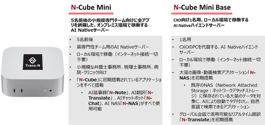 トランスエヌ株式会社、小規模チーム向けオンプレミスAIサーバー「N-Cube Mini」シリーズを発売