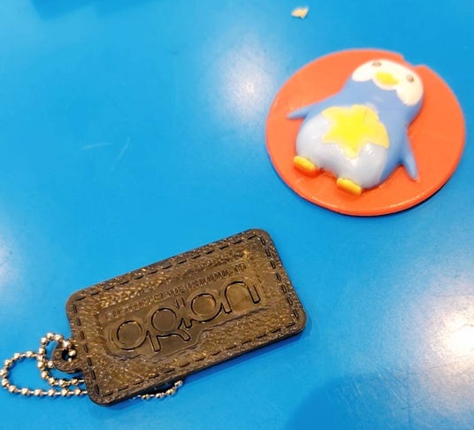 セミナー(8/26)で作成した射出成形品 (皮調プレートと7色成形品)