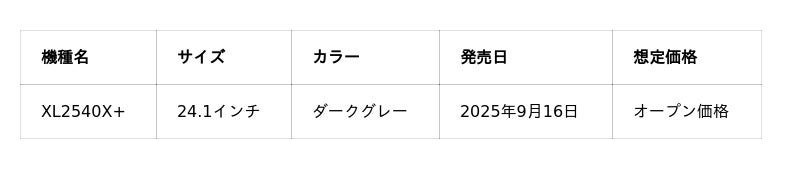 XL2540X+:https://zowie.benq.com/ja-jp/monitor/xl2540x-plus.html