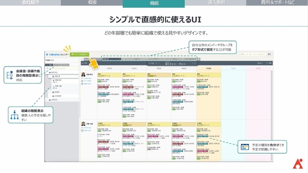 rakumo カレンダー for Microsoft 365は、多くの日本企業が採用する“階層型組織”に合わせてデザインされた、スケジュール管理ツールだ。誰もが直感的に使えるシンプルなUIと、スケジュールの確認・調整のストレスを解消する階層型のアドレス帳が特徴だ。