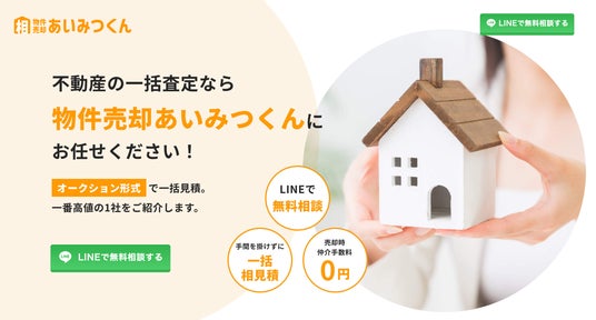 株式会社アクティブ(本社:東京都港区)は、2025年9月10日より、不動産売却支援サービス「物件売却あいみつくん」の無料相談キャンペーン第2弾を実施いたします。本サービスでは、多数の不動産会社からの電話やメール対応に疲弊することなく、オークション形式で最も高い見積もりを提示した1社のみをご紹介します。まずは、LINEでお気軽にご相談ください。