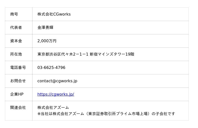 2019年3月にCGプロダクションで9年の経営経験を持つ代表の金澤が株式会社アズーム【東証プライム:3496】との共同出資によって設立。